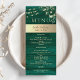 Defina um tom refinado para sua celebração com este elegante cardápio de casamento moderno, apresentando um fundo de madeira rústica combinado com tons de esmeralda profunda. A renda floral dourada inspirada em boho e as luzes cintilantes adicionam charme vintage e calor sofisticado. Perfeito para casamentos de outono, inverno ou ao ar livre, este cardápio combina elegância rústica com estilo moderno. Personalize com os detalhes do seu cardápio para criar uma paisagem de mesa de recepção coesa e memorável.