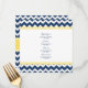 Menu janto de casamento em elegante azul marinho escuro, amarelo-limão brilhante e branco com padrão retrorreflector zigzags divertido, personalizável com seus detalhes e disponível em produtos de casamento correspondentes.