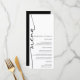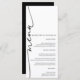 Um menu de casamento preto e branco, elegante e moderno, com um roteiro elegante e um layout minimalista. Este na moda é perfeito para qualquer recepção de casamento clássica, contemporânea ou formal. Projetado com tipografia limpa e caligrafia refinada, ele melhora sua mesa de casamento com sofisticação. Um eterno e um chic na sua suíte de papelaria de casamento.