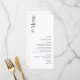 Elevem a sua recepção com este Menu Personalizado de Casamento Simples de Moeda Negra e Branca. Perfeito para comemorações de eterno, esses cartões de cardápio de casamento apresentam um design clássico, ideal para aqueles que buscam ideias elegantes de cardápio de casamento e menus sofisticados de casamento. Melhore sua configuração de mesa com menus de casamento com fita ou personalize cada menu de casamento com o nome de convidado para um toque personalizado. Descubra os menus de casamento perfeitos para impressionar seus convidados e completar seus menus de casamento dos seus sonhos.