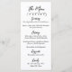 Menu Simples de Janto de Casamento Negro e Branco Inspirado Europeu. Este cartão minimalista de casamento mantém o design limpo e o eterno, deixando o guião manuscrito brilhar. Uma simples linha de preto no topo adiciona um sotaque sutil, enquanto o resto da frente destaca os detalhes do menu em uma mistura elegante de scripts e fontes serif para uma aparência refinada e clássica. No verso, os nomes da noiva e do noivo e a data do casamento são cuidadosamente exibidos, oferecendo um toque pessoal e significativo. Totalmente personalizável, o texto pode ser adaptado para complementar seu tema de casamento. Perfeito para recepções de casamento, jantas de ensaio ou chás de panela, este cartão de menu traz um toque de elegância para seus eventos especiais enquanto mantém o design simples e sofisticado.