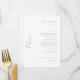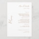 Menu de casamento branco elegante. Texto dourado.