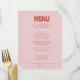 Um retro fedorento, moderno e brilhante menu de janto de casamento. Que apresenta o design de modelo chic do fundo rosa-bolha da bolha de boho vintage e o menu de tipografia em negrito em ferrugem. Perfeito e compatível com toda a suíte.
