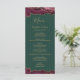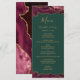 Este elegante e moderno menu de casamento apresenta bordas de cima e de baixo da cor d'água burgundy, cortada com brilho dourado. O texto aparece em letras elegantes douradas, letras itálicas e em placas em um fundo verde esmeralda. O design de ágata é repetido no reverso.