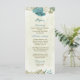 Belo cartão de cardápio romântico com flores azuis e brancas e algumas folhas verdes bonito. PARA MAIS PRODUTOS CORRESPONDENTES, clique na coleção acima ou entre em contato comigo