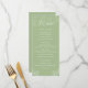 Um belo e elegante cartão verde de casamento sábio, com a inscrição em script, florais brancos no topo do cartão e folhas no fundo. Personalize com suas próprias opções de refeição.