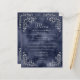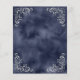 Este elegante menu de casamento inspirado na vintage apresenta o texto em um roteiro de cinza de prata pálida e fontes serif, enquadrado por um filme foliar de prata vintage em quatro cantos em um fundo de marinho azul d'água. O quadro e o fundo de aquarela são repetidos no reverso.