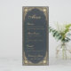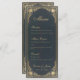 Este elegante cardápio de casamento com ar vintage, recomendado para casamento com cores de marinho e ouro, tem em ambos os lados um quadro decorativo barroco ouro sobre fundo azul escuro. Os nomes, o título "Menu" e as legendas são escritos em um roteiro caligráfico elegante. Todo texto pode ser personalizado e tem uma cor de ouro semelhante ao quadro do ouro. O fundo com suas elegantes decorações de ouro em azul escuro é de uma coleção de cobrir de livros franceses, de Georges Mercier (1885-1939) - Madame de Maupin por Teophile Gautier, volume 1, edição 1911, Paris - agora no dominio público.