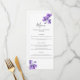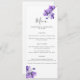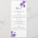 Um cartão de cardápio de casamento bonito e delicado, com galhos de orquídea violeta de cor aquática e letra com letra manuscrita. Outras peças de papelaria estão disponíveis neste design.