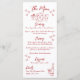 Menu Casamento Whimsical Vermelho Francês Desenhado À M