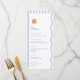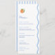 Este design de menu faz parte de uma nova coleção baseada no meu popular intervalo de convites de limões "Amalfi". O convite é poupado, apresentando uma borda ondulada, uma simples laranja solteiro com folhas e uma listras azul e branca de verão invertidas. Onde está a palavra "menu", pode ter o nome de convidado, para que os cartões de menu também possam duplicar como cartões de lugar.