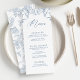 Menu Chá de panela Floral de Chinoiserie Azul Francês
