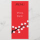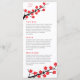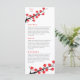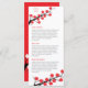 Apresente suas seleções de refeições de recepção em estilo com este cardápio de casamento com temas florescentes. A frente branca apresenta flores de cereja vermelha, um ramo preto, e texto preto, com os nomes do casal realçados em vermelho. O dorso vermelho, adornada com flores brancas de cereja e um ramo negro, oferece um contraste espantoso, perfeito para um casamento moderno e sofisticado.