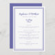 Simples, minimalista e elegante Menu Casamento apresenta um design contemporâneo com uma dupla imagem em azul-de-virada em um fundo branco-chico. A formulação tradicional proporciona sofisticação eterno mas moderna. Personalize o design do casamento com os detalhes do menu em letras brancas e roteiro. A parte traseira da placa corresponde a azul de periwinkle correspondente.