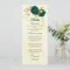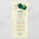 belas flores verdes esmeraldas e ouro deixam um belo cardápio de casamento.
