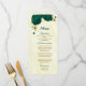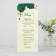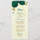 belas flores verdes esmeraldas e ouro deixam um belo cardápio de casamento.