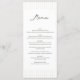 Eleve a decoração da sua mesa de recepção com este cardápio de casamento verde com listras minimalistas e sofisticadas, projetado para trazer elegância e sofisticação moderna ao seu dia especial. Com listras em verde sage suave e tipografia minimalista refinada, este cardápio adiciona um toque atemporal e elegante à decoração do seu casamento.