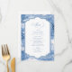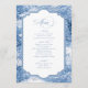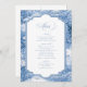 Este cardápio de casamento com a fronteira decorativa tem a elegância eterno de um padrão clássico de Chinoiserie azul e branco e um motif de lanterna em reverso. A coleção apresenta padrões sofisticados e delicados motivos florais inspirados na porcelana tradicional chinesa, criando uma estética refinada e romântica. De convites lindamente projetados para coordenar suprimentos e decorações partidárias, cada detalhe é cuidadosamente trabalhado para trazer um senso de graça e charme para o seu dia especial. Personalize cada peça com seus detalhes para uma experiência de casamento verdadeiramente única. Procure ID1094 para ver todos os produtos de coordenação nesta coleção.