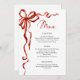 Menu Christmas Whimsical Funky Red Bow Dinner Party