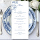 Menu Classic French Blue Flowers & Ribbons Wedding