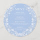 Entre na elegância do eterno com o nosso cartão de cardápio boêmico primavera/verão redondo, mostrando uma coroa deliciosa de flores silvestres delicadas em tons azuis suaves. Aumente sua experiência de jantar de casamento com esta sofisticada adição, projetada para trazer uma sensação de refinamento para sua celebração. Perfeito para temas de casamento rústicos, boêmicos e ao ar livre, este cardápio define a palco de um evento inesquecível. Explore a beleza deste belo detalhe do casamento e torne seu dia especial realmente memorável.