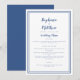 Um cardápio de casamento simples e elegante com uma borda de duplo quadro nítida em azul marinho clássico em um fundo branco limpo. “Cardápio de Casamento” aparece em letra cursiva refinada acima de um layout minimalista 5×7 que destaca cada prato com tipografia tradicional. O verso azul clássico sólido adiciona um toque moderno e atemporal para jantares de ensaio ou mesas de recepção formal. Personalize com o texto do seu evento para uma apresentação polida e coordenada.
