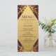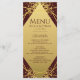 Este menu elegante apresenta os seus detalhes sobre uma forma luxuosa de diamante de ouro com um borrão de ouro reluzente sobre um fundo rico de burlões. Você pode personalizá-lo completamente clicando no link personalizar. Isto é parte de um lindo pacote de casamento que inclui cartões de lugar, cartões de número de mesa e muitos outros itens.