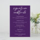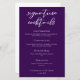 Este cardápio de coquetéis roxos de assinaturas roxas apresenta uma bela tipografia branca em uma sólida violeta profunda para uma cerimônia noturna no inverno. Um roteiro minimalista e uma cor ousada fazem seu pop de impressão de bar e se destacam da multidão.