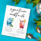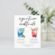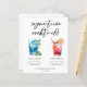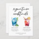 Esta folha de papel de cardápio com assinatura costeira apresenta uma típica tipografia negra acima de 2 bebidas à beira-mar e seus ingredientes para o seu bar de casamento na praia. Um desenho de uma lagoa Azul e Shirley Sujo ou bebida de cereja adiciona um talento legal ao seu menu de bar. Preencha com os nomes dos casais e a data para sua recepção.