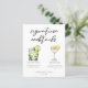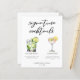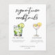 Esta elegante folha de menus de assinaturas de casamento mostra uma tipografia negra simples acima de 2 bebidas e seus ingredientes para seu bar de verão ao ar livre. Um desenho fofo Gin e Tonic e Lemon Drop adiciona um talento legal ao menu do seu bar. Preencha com os nomes dos casais e a data para sua recepção.