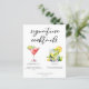 Esta ficha de cardápio de coquetéis de assinatura sofisticada apresenta uma tipografia negra simples acima de 2 das suas bebidas favoritas e seus ingredientes para o seu bar de casamento costeiro. Um desenho Cosmopolita Chic e Mojito adiciona um talento divertido ao seu menu de bar. Preencha com os nomes dos casais e a data para sua recepção.