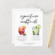 Esta folha de menus de coquetéis de assinatura gráfica apresenta uma simples tipografia negra acima de 2 bebidas e seus ingredientes para seu bar de casamento. Um belo verão Sangria e desenho Tônico e Gin adicionam um talento legal ao seu menu de bar. Preencha com os nomes dos casais e a data para sua recepção.