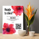 A placa de menu dupla plana com o código QR da "Coleção de Casamentos Anemone Dreamscape" oferece uma adição encantadora e funcional à configuração da sua recepção de casamento. Na frente da placa, contra um fundo branco limpo, a legenda "Pronto para jantar?" convida os convidados a se juntar à experiência de jantar. Abaixo da legenda, há espaço para texto personalizável, onde você pode adicionar uma mensagem ou detalhes sobre os arranjos de jantar. Adicionando um toque de elegância, dois anêmonos vermelhos marcantes decoram os cantos superior e inferior do lado frontal, complementando o design geral com sotaques florais vibrantes. Ao virar a parte de trás da placa, você encontrará uma continuação da apresentação elegante. Em um fundo branco, um anêmono vermelho solteiro agarra o canto superior, adicionando um pop de cor e charme. Abaixo, os nomes dos casais, a data do casamento e a localização do local são mostrados elegantemente, adicionando um toque personalizado ao cartão de menu plano de lado duplo. Esta placa de menu plana de dois lados não só serve como guia prático para sua recepção de casamento, como também melhora a estética geral com seus belos elementos de design. Faz parte da abrangente "Coleção de Casamentos de Sonhos Anêmonos", que oferece opções coordenadas de papelaria para elevar a ambição do seu dia especial.