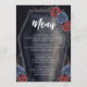 Bring the supernatural to your wedding night with this frightful "I See Wed People" menu. With it's coffin and moody blue and red floral arrangements, it's the perfect stationary to prepare for a haunted Halloween wedding extravaganza. Perfect for couples who plan to tie the knot in the spooky season or for anyone who loves a gothic twist.