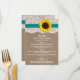 A coleção de girassol rústico é uma design impressionante que apresenta um adorável fundo de efeito de burvolta rústico com uma trim romântica de efeito de renda branca vintage, acabada com um girassol e uma fita verde-rosa impressionantes. Esses menus podem ser personalizados para sua ocasião especial e fariam a modelo perfeita para menus de casamento, menus de chá de panela, menus de festa de noivado, menus de festa de aniversário e muito, muito mais. *Note que o Zazzle só vende produtos impressos para que este item não tenha quaisquer materiais reais de burlap, rendas, girassol ou fita. EXIBIR ITENS CORRESPONDENTES PARA ESTA COLEÇÃO