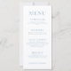 Melhore o encanto da sua recepção de casamento com estes cartões de cardápio sofisticados e na moda botânicos. Decorado com delicado roteiro de caligrafia azul-claro e buquê entrelaçado com flores coloridas de flor silvestre e flor de prado.