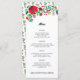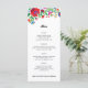 Este belo e colorido menu de casamento tem facilidade de editar caixas de texto, uma visão colorida e moderna sobre o tradicional bordado mexicano, e o formato longo e fino que é fácil de enfiar em guardanapos dobrados.