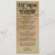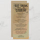 Este cardápio bonito vai adicionar diversão e estilo à sua recepção de casamento. Ele apresenta um design de retroalimentação em tons de terra neutros de bronzeado, esticado e verde de sábio. A palavra título da arte diz: Coma Bebida e seja casado! Há espaço para os nomes da data do casal e do casamento, e o texto do menu é totalmente personalizável.