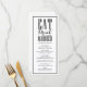 Coma, beba e se case. Preencha sua capa de mesa de eventos com este cartão de menu personalizável. Apresenta caligrafia moderna e tipografia clássica, perfeita para qualquer tema de casamento. Personalize adicionando seus detalhes. Itens correspondentes estão disponíveis. Esta placa de menu em preto-e-branco está disponível em outras cores.