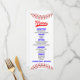 Menu Comida Chá de fraldas Azul Vermelho do Baseball Sp