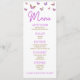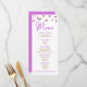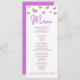 Este é um menu de festa de aniversário com tema de borboleta roxa. O design consiste num tema de brilho da borboleta roxa. menu de borboletas, decorações, menu de decoração de eventos, ideias de chá, menus de aperitivo de comida de festa de aniversário
