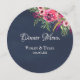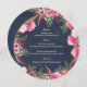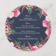 Menu circular floral cor-de-rosa brilhante design com texto branco sobre fundo azul marinho. Personalize o texto como preferido.