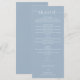 Este elegante menu de casamento com coração azul empoeirado pode ser personalizado com suas informações em tipografia chic. Projetado por Thisisnotme©