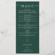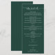 Este elegante menu de casamento com coração verde esmeralda e letra cursiva pode ser personalizado com suas informações em tipografia sofisticada. Projetado por Thisisnotme©
