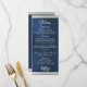 Corações entrelaçados e fita embelezam este menu de casamento, a parte de trás tem um espaço de monograma. Disponível com cores diferentes para o tema do seu casamento. (A fita é simulada na trabalho de arte). Concebido para coordenar com a Coleção Caseira "Dois Tornar-se-ão Um - Prateado e Dourado". Para alterar os detalhes, clique em "Personalizar". Para mover o texto ou alterar o tamanho, a fonte ou a cor do texto, clique em "Clique para personalizar mais"