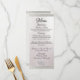 Corações entrelaçados e fita embelezam este menu de casamento, a parte de trás tem um espaço de monograma. Disponível com cores diferentes para o tema do seu casamento. (A fita é simulada na trabalho de arte). Concebido para coordenar com a Coleção Caseira "Dois Tornar-se-ão Um - Prateado e Dourado". Para alterar os detalhes, clique em "Personalizar". Para mover o texto ou alterar o tamanho, a fonte ou a cor do texto, clique em "Clique para personalizar mais"