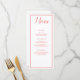 Um cardápio clássico de coral e branco, este cardápio de recepção de casamento apresenta um lindo fundo branco com uma fonte coral. Com o "Menu" escrito no topo usando uma fonte cursiva de coral, todas as suas informações são impressas em coral elegante em um fundo branco. Personalize como quiser.