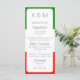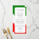Este menu elegante e moderno apresenta um tema italiano com uma imagem da bandeira da Itália impressa ao fundo, bem como no verso. Você pode substituir os itens do menu com as opções de comida de sua escolha. É adequado para um evento de café da manhã, brunch, almoço ou jantar, casamento, banquete ou restaurante.