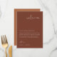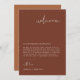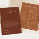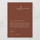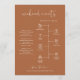 Esta carta de boas-vindas do casamento e a linha do tempo apresentam uma fonte escura escrita à mão e um design moderno minimalista com uma combinação boho terracotta, laranja queimada e cor branca. Edite com facilidade o texto *maioria* nesta linha do tempo. Clique em 'clicar para personalizar mais' na seção de personalização para abrir o editor de cheios. Para adicionar novos ícones, visite https://www.svgrepo.com/ e pesquise o ícone de que você precisa. Faça o download como .svg e depois arraste-o e solte-o no editor do Zazzle. Altere a cor do ícone no lado direito do editor.