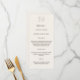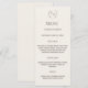 Adicione um toque refinado à mesa do seu casamento com este elegante cardápio de casamento em marfim, apresentando um monograma atemporal emoldurado por uma delicada grinalda. Projetado em uma paleta neutra suave, este cardápio complementa perfeitamente um tema de casamento de luxo discreto.